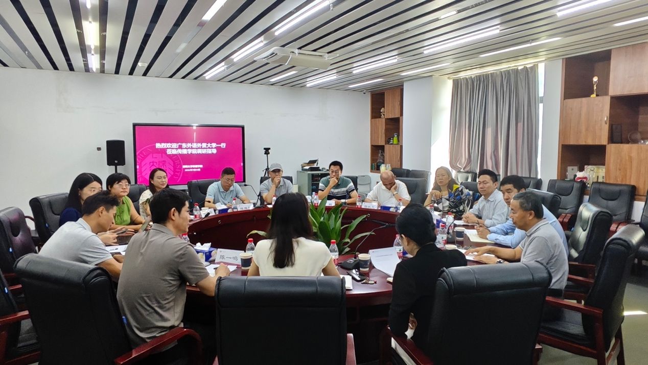 一行的到来表示热烈欢迎。杨洸详细介绍学院学科建设工作和未来规划。在学术研究层面,建设中国改革开放新闻传播研究数据库,同步开展参与报道媒体人口述史采访,以挖掘史料讲好新闻报道故事;在人才培养维度,构建国际传播本硕博贯通体系,涵盖本科国际传播创新班、专硕方向及博士二级方向;在产教融合领域,借力高科技产业为学科赋能,在健康传播等方向搭建产教融合平台,深化合作推进实践落地。